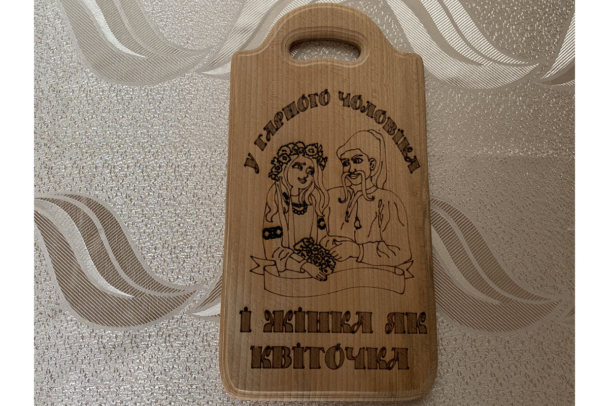 Кухонна дошка "У гарного чоловіка і жінка, як квіточка"